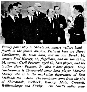 The band was formed in 1903 to teach music to children of the miners of Shirebrook. Practices commenced over a chemists shop in the village. In a short period of time a successful brass band emerged and became known as the Shirebrook Silver Prize Band under its conductor Mr. J. Levick. During his 35 years with the band many prizes were won but the most notable was the Grand Shield at the Crystal Palace in 1927. In 1949 the band went under the wing of the Miners Welfare Scheme and became known as the Shirebrook Miners Welfare Band.